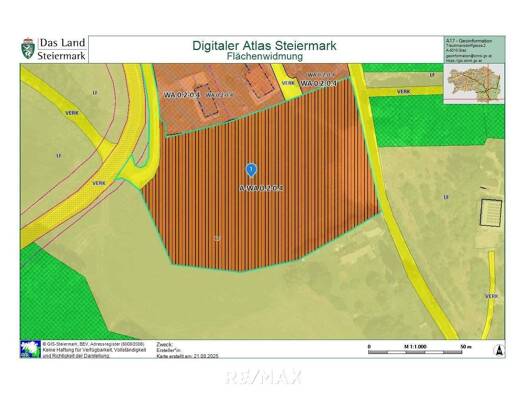 Das angebotene Baugrundstück liegt in einer ruhigen Seitengasse in Gralla, nur unweit von Kindergarten und Schule entfernt. Die Grundstücksfläche beträgt ca. 982m2 und die Bebauungsdichte ist WA 0,2 ...