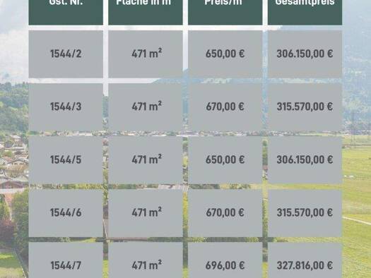 Willkommen in Bludesch - dem perfekten Ort für Ihr neues Eigenheim! Entdecken Sie diese 5 attraktive Baugrundstücke mit je einer Fläche von 471 m², das Ihnen die Möglichkeit bietet, Ihren Traum vom E...