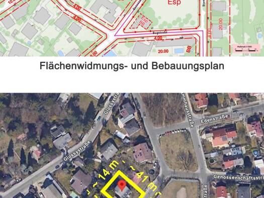 verbaubare Fläche: max 137 m² (17% des Bauplatzes) Wohngebiet, Wohnhäuser der BKL I (bis 4,5 Meter), offene Bauweise, max. 1 Nebengebäude mit 30 m² Strom und Brunnen am Grundstück Gartenhäuschen aus ...
