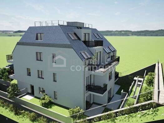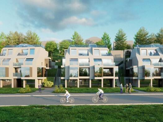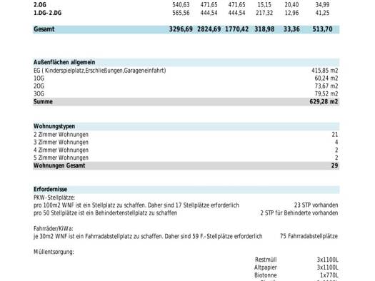 Sonniges Bauträgergrundstück mit einer Baubewilligung. 1.735 m² Wfl + 513 m² Gärten + 319 m² Terrassen + 35 m² Loggia + 34 m ² Balkone + ca. 1.000 m² für Garage, Technik-, Müll-, Fahrradraum, Gänge u...