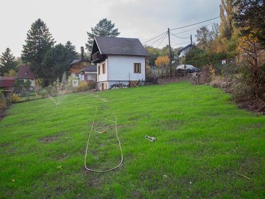 verbaubare Fläche: max 137 m² (17% des Bauplatzes) Wohngebiet, Wohnhäuser der BKL I (bis 4,5 Meter), offene Bauweise, max. 1 Nebengebäude mit 30 m² Strom und Brunnen am Grundstück Gartenhäuschen aus ...