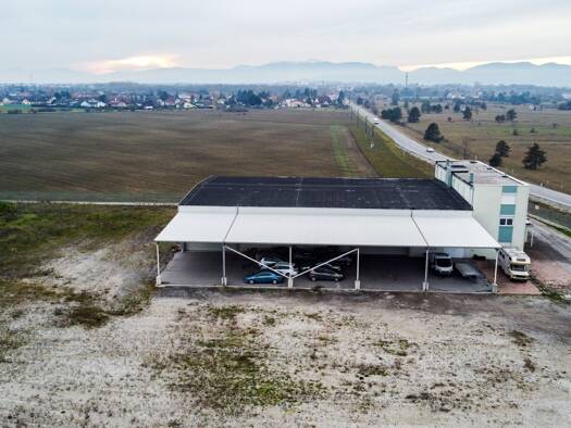 Die Liegenschaft besteht aus drei Grundstücken. Gst. 892/2: 20.000 m², bebaut mit einem Hallen- und Bürokomplex, Widmung: BI (Bauland Indstriegebiet) Gst. 892/3 und 957/2: 20.000 n² und 3.540 m², unb...