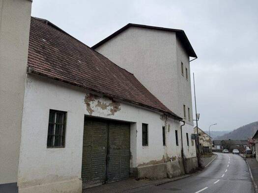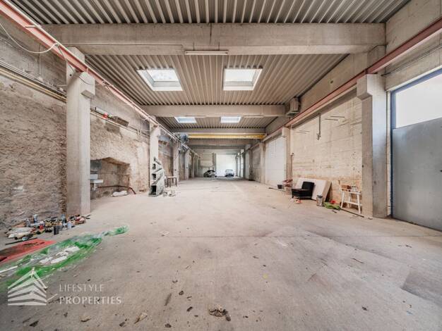 Lager/Einstellhalle mit ca. 360 m² Nutzfläche (Betonboden) und einigen kleineren Nebenflächen (z.B. Büro/Lagerfläche) Baujahr 1991 Grundstück ca. 2000 m² (teilw. Obstbaumbestand) Flächenwidmung: Glf ...