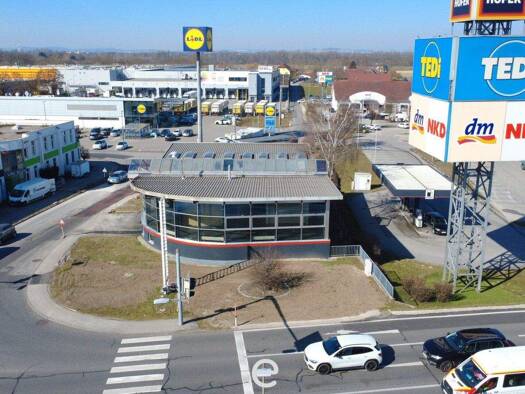 Diese vielseitige Gewerbeliegenschaft überzeugt mit durchdachter Architektur, hervorragender Sichtbarkeit und attraktiven Entwicklungsmöglichkeiten. Das Hauptgebäude bietet eine großzügige Ausstellun...
