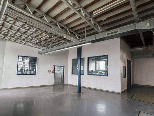 Die großzügige Werkshalle wurde 1977 errichtet und ist baulich mit einem Mehrfamilienhaus verbunden. Sie erstreckt sich über das Erd- und Kellergeschoss und verfügt über eine leistungsstarke Photovol...