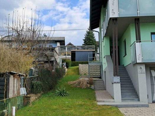 Einfamilienhaus mit unbebautem Grundstück Auf der Liegenschaft befindet sich ein voll unterkellertes Wohngebäude. Über die westliche Zufahrt gelangt man zum überdachten Vorplatz und zur großräumigen ...