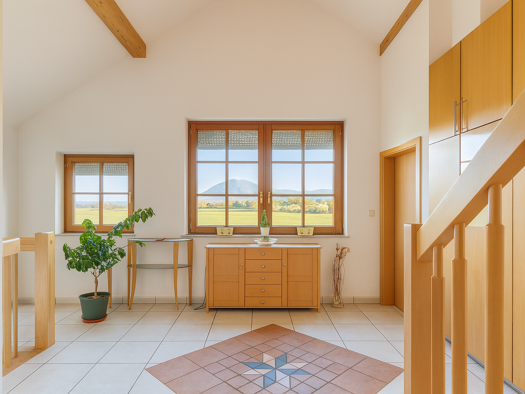 Dieses kleine, charmante Einfamilienhaus erstreckt sich über drei gemütlich gestaltete Ebenen und verbindet komfortables Wohnen mit einem Hauch von alpinem Lebensgefühl. Bereits im Eingangsbereich öf...
