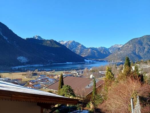 Objektbeschreibung Auf der Sonnenseite des Achensees, dort, wo das Licht in den Morgen fällt und das Wasser im Abendgold glitzert, liegt diese einzigartig gelegene Immobilie – ruhig, sonnig und natur...