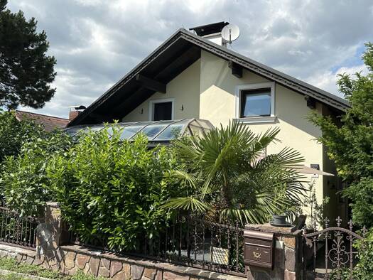 GRUNDSTÜCKSGRÖSSE: 452 m² WOHNFLÄCHE: 147 m² ERDGESCHOSS: Vorraum, neuwertige Küche mit Essplatz, Wohnzimmer mit Kamin und Zugang zum beheizbaren, wunderschönen Wintergarten, Gästezimmer,...