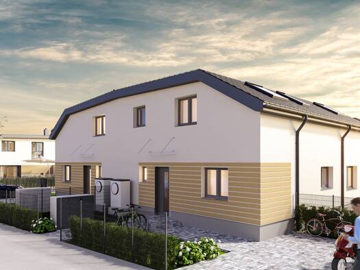 8 Doppelhaushälften in Aussichtslage in der Nähe von Wien Die Häuser 1- 6 befinden sich noch im Bau und werden wunschgemäß belagsfertig bzw. schlüsselfertig zur Verfügung stehen. Der Preis 419.000 € ...