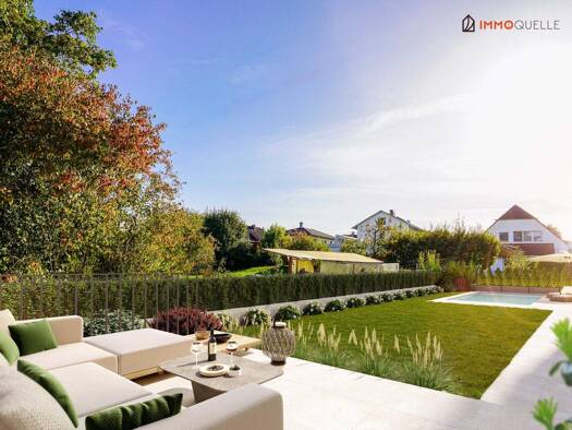 PROVISIONSFREI - Traumhafte Doppelhaushälfte in Rutzing - mit Pool, Kamin und Garten! In Rutzing gelangt eine moderne Doppelhaushälfte mit rund 125 m² Wohnfläche auf einem 351 m² großen Grundst...