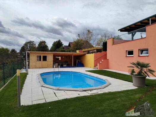Das Wohnhaus steht auf einem ebenen, sonnigen Grundstück mit rund 986 m² Fläche. Der ursprüngliche Altbestand (Baujahr 1951) wurde im Jahr 2019 umfassend saniert und durch einen modernen Zubau erweit...