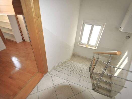 Das Haus hat eine Wohnfläche von 130 m2 inklusive der Einliegerwohnung mit 55m2. Man betritt das EFH über das Vorzimmer. Links davon gibt es ein kleines Gäste-WC mit Dusche. Links findet sich das Gäs...
