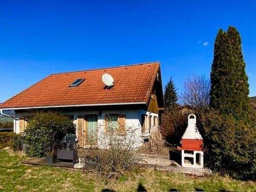 Dieses charmante, teilmöblierte Fertigteil-Einfamilienhaus (Fa. Okal) befindet sich in idyllischer, ruhiger Lage in einem kleinen Seitental und überzeugt durch seine leichte Hanglage sowie ein s...