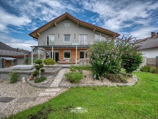 In traumhafter Aussichtslage am Ende einer ruhigen Sackgasse in Innerschwand am Mondsee präsentiert sich dieses moderne Einfamilienhaus als architektonisches Statement zwischen See und Bergwelt. Leic...