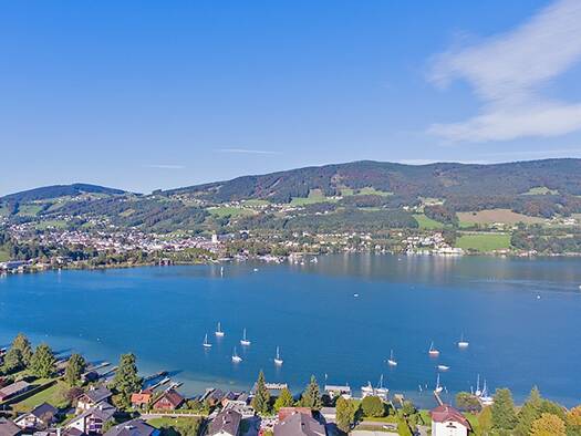 Panoramalage mit unverbaubarem See- und Drachenwandblick In einer der begehrtesten Wohnlagen von Mondsee präsentiert sich dieses moderne und hochwertig errichtete Architektenhaus als wahres Juwel für...