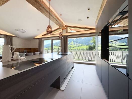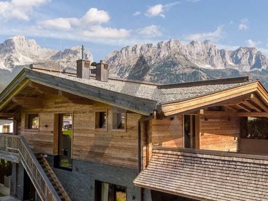 Dieses moderne Chalet erbaut im alpinen Stil mit Fertigstellung im Jahre 2020, befindet sich in unmittelbarer Skipistennähe und bietet einen herrlichen Blick auf den Wilden Kaiser. Die großzügige Woh...