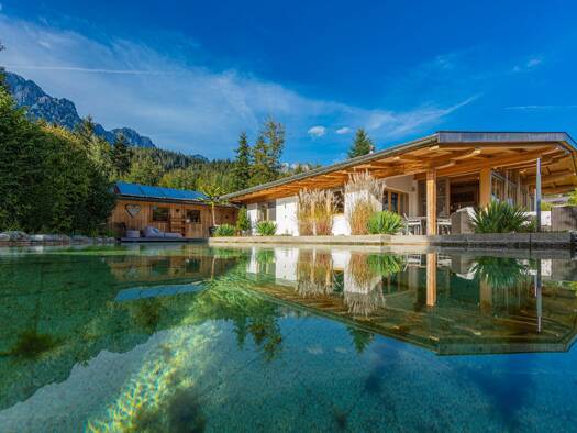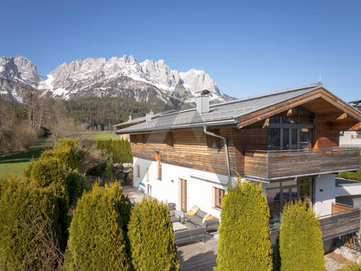 Diese exklusive Landhausvilla besticht durch die idyllische und ruhige Lage, direkt am Fuße des Wilden Kaisers. Durch die großen Fensterfronten erhält man einen imposanten Blick auf das Kalkmassiv un...