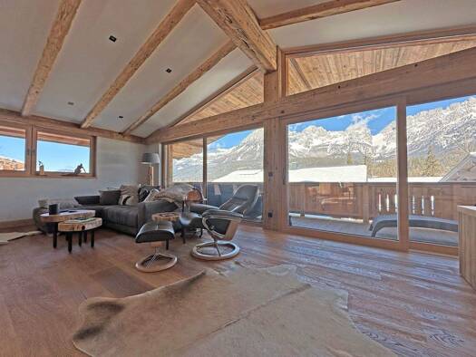 In ruhiger, sonniger leichter Hanglage in einer Sackgasse mit traumhaften Panoramablick und unmittelbarer Skipistenanbindung befindet sich dieses hochwertige Chalet mit atemberaubenden Ausblick auf d...