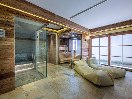 Das Aussehen und die Atmosphäre der Steinbergkogel Lodge erinnert an ein altes Bergdorf - Die Lodge ist auf einen der umliegenden Gipfel ausgerichtet, kleine Gärten und gemütliche Terrassen laden daz...