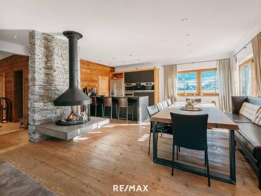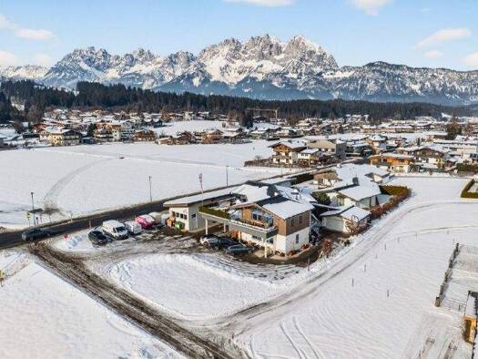 In traumhafter Lage mit unvergleichlichem Kaiserblick präsentiert sich dieses Chalet als Rückzugsort für höchste Ansprüche. Auf einer großzügigen Wohn-/Nutzfläche von ca. 244 m² verbindet das Haus al...