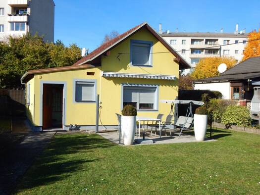 "Kleingartenvilla mit Pool und Parkplatz im Kleingartenverein Ruthnergasse" Dieses exklusive ca. 2000 errichtete Einfamilienhaus mit ca. 180 m² Wohn-Nutzfläche auf 3 Etagen und einem ca. 340 m² große...