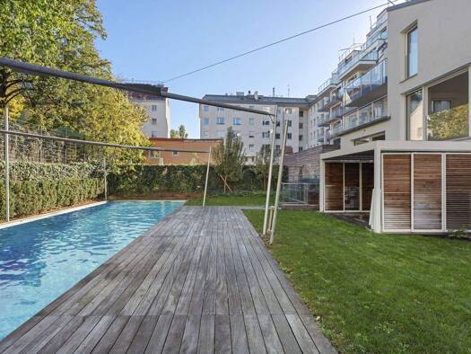 Kurzbeschreibung ELEGANTES-TOWNHOUSE mit SWIMMINGPOOL auf EIGENGRUND AN DER ALTEN DONAU Objekt IHR TRAUMDOMIZIL AUF EIGENGRUND AN DER ALTEN DONAU Willkommen in Ihrem neuen Erstbezug-Einfamilienhaus i...