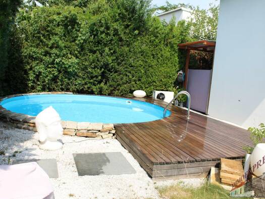 Auf 557 m² Eigengrund finden Sie ca. 195m² Wohnfläche aufgeteilt auf 2 Etagen (durch den Hochkeller als EG und DG bezeichnet) und einen großzügigen Garten. Stiegen zum Eingang sind seitlich an ...