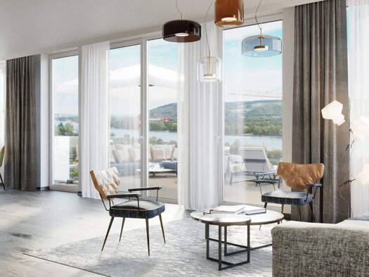 Willkommen bei The River Terrace - Exklusives Wohnen am Donauhang The River Terrace ist eine herausragende Wohnanlage am Nordosthang des Leopoldsbergs im begehrten 19. Wiener Bezirk. Hier entste...