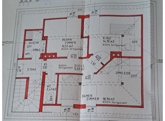 Das Haus hat eine Wohnfläche von 130 m2 inklusive der Einliegerwohnung mit 55m2. Man betritt das EFH über das Vorzimmer. Links davon gibt es ein kleines Gäste-WC mit Dusche. Links findet sich das Gäs...