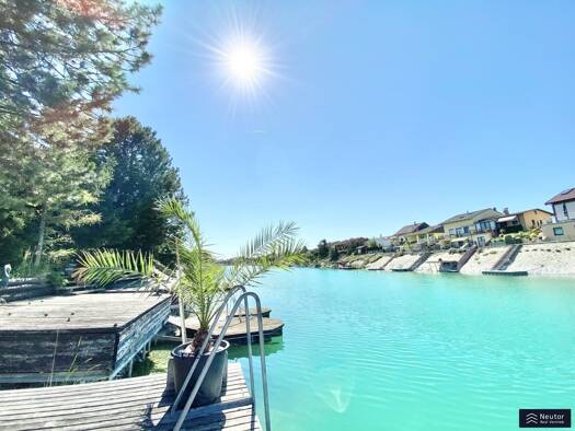 Willkommen in Ihrem Traumhaus am See auf Pachtgrund! Dieses liebevoll gepflegte Einfamilienhaus bietet zahlreiche Highlights und einen atemberaubenden Platz direkt am türkisblauen Badesee. Beim Betre...
