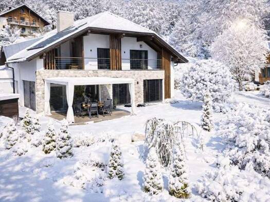 FASZINIERENDES CHALET IN RUHEOASE WINTERWUNDERLAND NAHE VELDEN AM WÖRTHERSEE Die klassische Landhausatmosphäre sticht in dem vom Kitzbüheler Planungsbüro Ing. Franz Obermoser 2015 umgeplanten und 201...