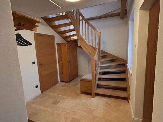 Nettes, älteres Einfamilienhaus mit Wohn-und Schlafräumen im Erdgeschoss und teilausgebauter Mansarde. Wohnküche mit zusätzlich schönem Holzherd nach altem Stil, Pelletszentralheizung, Kaltdach mit B...