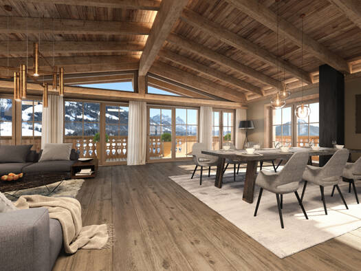 In ruhiger, leicht erhöhter Lage schmiegen sich diese charmanten Bergwelt-Chalets harmonisch in die umliegende Naturlandschaft. Von den weitläufigen Terrassen aus eröffnet sich ein Panoramablick auf ...