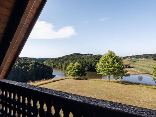 Unweit von Graz, an der Sausaler Weinstraße, ist dieses exklusive Blockhaus-Biochalet gelegen. Die idyllische Ruhelage und der gebotene unverbaute Panorama-Weitblick auf die Hügellandschaft bis hin z...