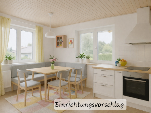 Ausstattung Haus: Erdgeschoss: Vorraum, Küche mit Essplatz, Wohnzimmer, Wintergarten mit Zugang zur überdachten Terrasse, 2 Zimmer, Abstellraum, Bad mit bodenebener Dusche, WC Obergeschoss: Vorraum, ...