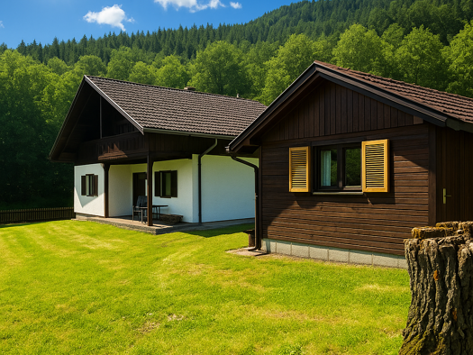 EIN BUNGALOW IN ABSOLUTER RUHELAGE - MITTEN IM 20 HEKTAR GROSSEN SCHLOSSPARK SEEBENSTEIN, MIT EIGENEM GARTEN, GEMEINSCHAFTSPOOL, SAUNA UND PLATZ FÜR DIE GANZE FAMILIE. Dieser modernisierte Bungalow w...