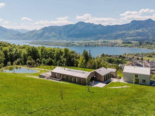 Panoramalage mit unverbaubarem See- und Drachenwandblick In einer der begehrtesten Wohnlagen von Mondsee präsentiert sich dieses moderne und hochwertig errichtete Architektenhaus als wahres Juwel für...