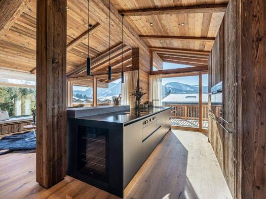 In absolut sonniger Toplage oberhalb des Golfplatzes Ellmau am Fuße des Wilden Kaisers, steht dieses luxuriöse Chalets mit fantastischem Ausblick. Auf insgesamt 3 Etagen, verbunden mit einem Lift, st...