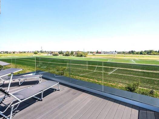 Im malerischen Rauchenwarth, das übrigens nicht in der Einflugzone des Flughafens liegt (siehe Lärmkarte bei den Bildern), steht ab sofort ein durch und durch designtes Einfamilienhaus - in welches v...