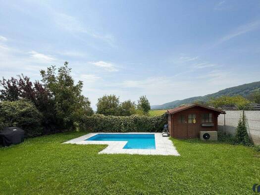 SCHÖNES FAMILIENHAUS IN SONNIGER LAGE MIT POOL UND GARAGE Dieses gepflegte Haus wurde 1980 in Massivbauweise errichtet und im Jahre 2019 um einen teilweisen Dachgeschossausbau erweitert. Es wurde ein...