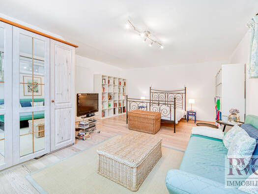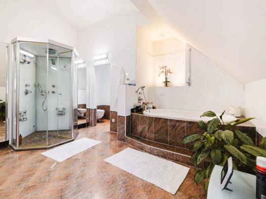 Das Erdgeschoss unterteilt sich in einen lichtdurchfluteten Wohn- und Essbereich mit großer Küche im Landhausstil. Ein Gästezimmer, sowie ein Wirtschaftsraum, beide mit hochwertigen Einbauschränken, ...