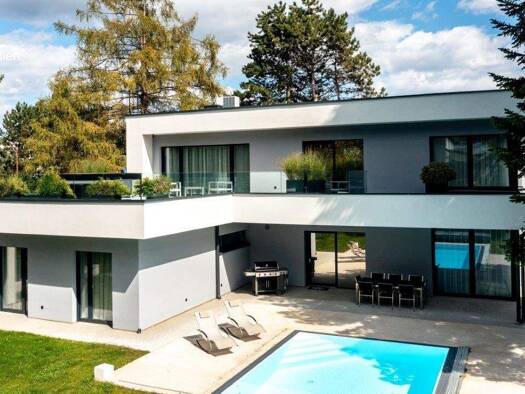 Dieses einzigartige Anwesen am Ende einer Sackgasse vereint architektonische Raffinesse, großzügige Flächen und eine parkähnliche Gartenlandschaft mit eigenem Waldanteil - ein Rückzugsort für Mensche...