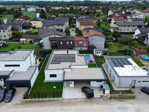 Ein Luxusbungalow in einer neuen Siedlung in Ennsdorf mit Pool und Doppelgarage. Luftwärmepumpe, Fussbodenheizung, Raffstore und Insektengitter. Es gibt auch eine besondere Deckenbeleuchtung und eine...