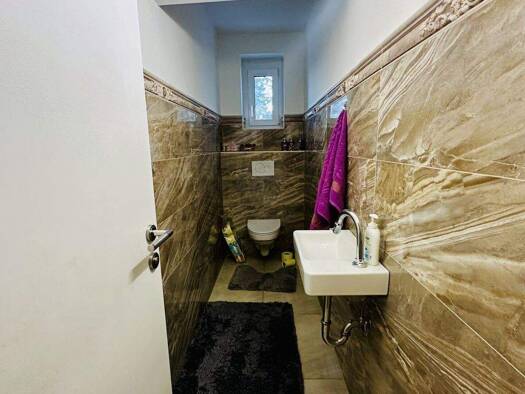 Das Haus ist 5 Gehminuten vom Busbahnhof entfernt, auch 5 Minuten vom Stadtzentrum, Schule, Kindergarten usw. Das Haus hat ein Erdgeschoss, einen ersten Stock und ein Dachboden (es besteht die Möglic...