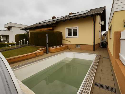Dieses geräumige Einfamilienhaus in Pottendorf bietet einen eleganten Eingangsbereich, offenen Wohn-Essbereich mit einer geräumigen DAN-Küche und eine überdachte Terrasse mit direktem Zugang zum Gart...