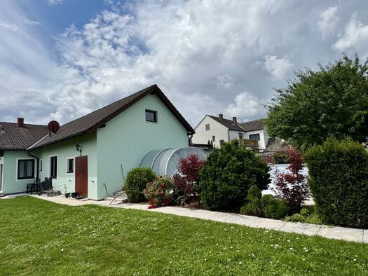 Eingegliedert im Ortsverband, mit dem Gefühl, alleine zu stehen, erstrahlt dieses nette, sofort bezugsfertige Eigenheim gepflegt und einladend im ländlichen Flair. Über einige Stufen betritt man die ...