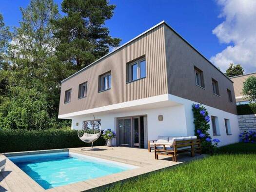 Die hochwertigen Doppelhäuser entstehen im idyllischsten Ortsteil von Steinhäusl und bieten einen atemberaubenden und unverbaubaren Panoramablick vom traumhaften Sonnenhang. In einer ruhigen Sackgass...