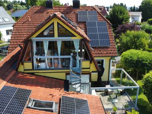 Das Haus liegt zentral in einer steilen Hanglage mit zwei Zugängen, wobei der Hauptzugang über die Schulstraße erfolgt, wo man auch bequem im eigenen Carport parken kann. Von dort gelangt man über di...