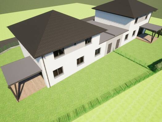 Zweistöckiges Einfamilienhaus ohne Keller, mit einer Wohnfläche von 244 m² und einer Nutzfläche von 83 m². Das Haus verfügt über eine Doppelgarage, ein Gartenhaus und wurde 2015/16 erbaut. Die Raumau...